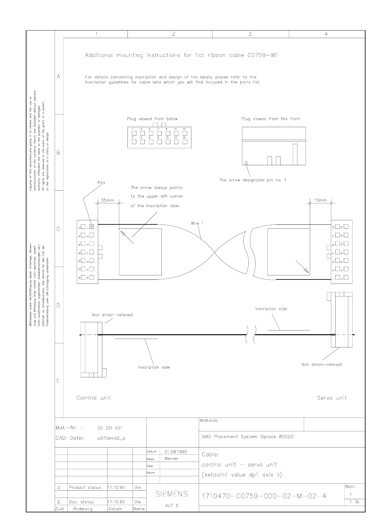 SIPLACE 80S-20 Cable Control unit - servo unit (setpoint value dp1 axis II) 3.5 - 137
