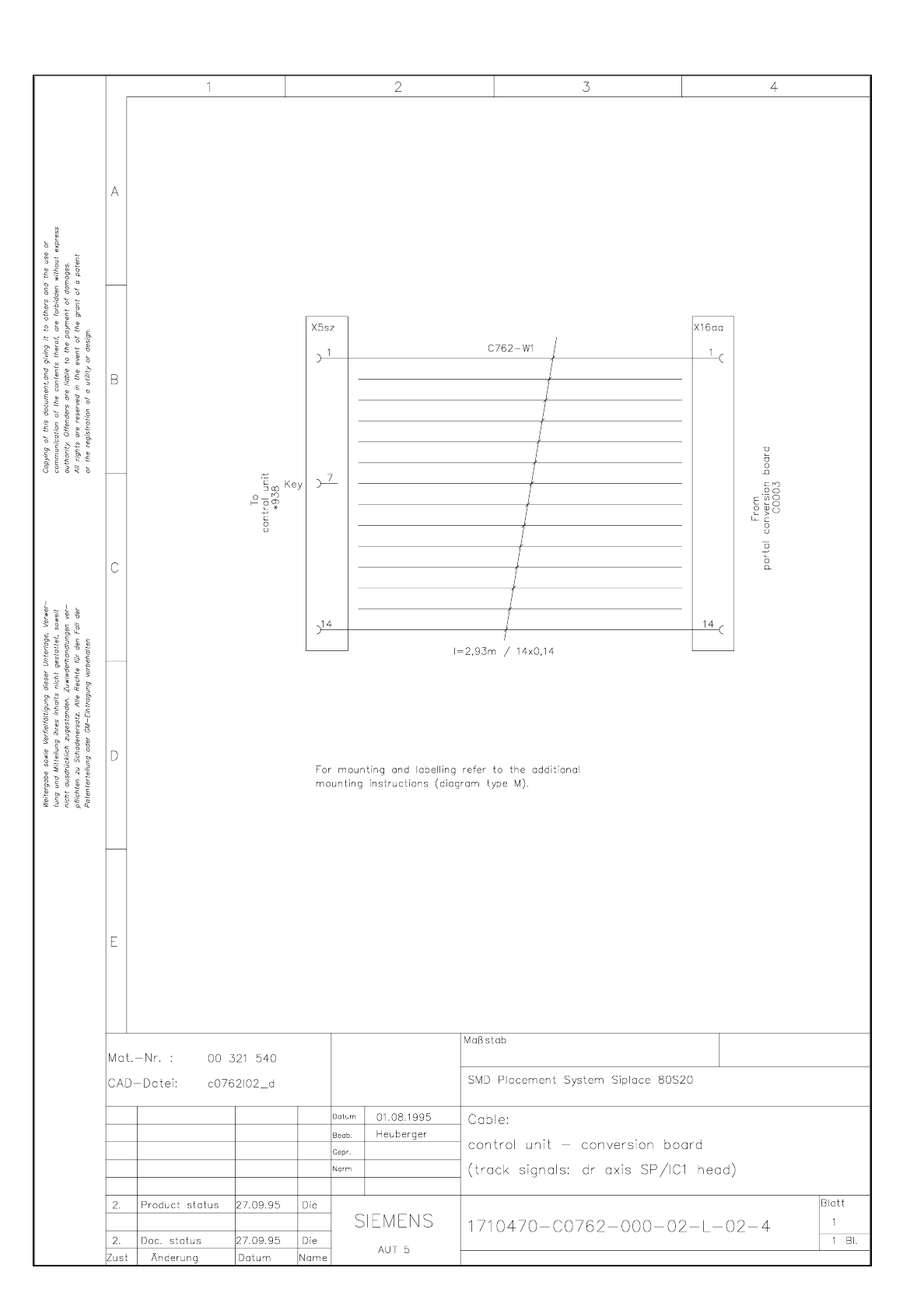 3.5 - 142 Cable Control u nit - c onversio n board (tra ck si gnals dr a xis - SP/IC 1 head) SIPLACE 80S-20 Cable Control unit - co nversion boar d (trac k signals d r axis - SP/IC1 h ead) C0762 L02.d wg 171047 0-C0 762-…