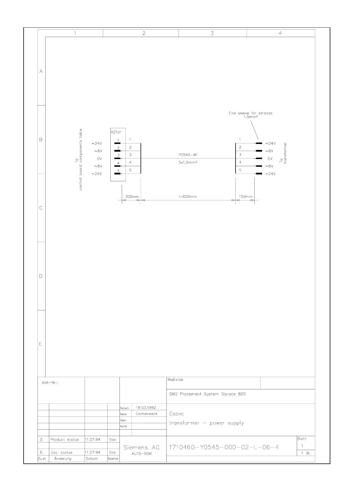 SIPLACE 80S-20 Cable Transformer - power supply 3.9 - 9
