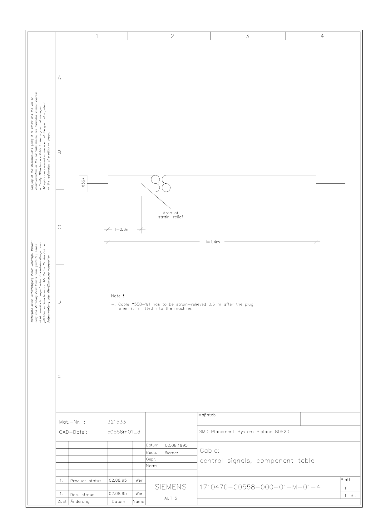 1710460-C0558-000-01-M-01-4 Cable Control signals - components table