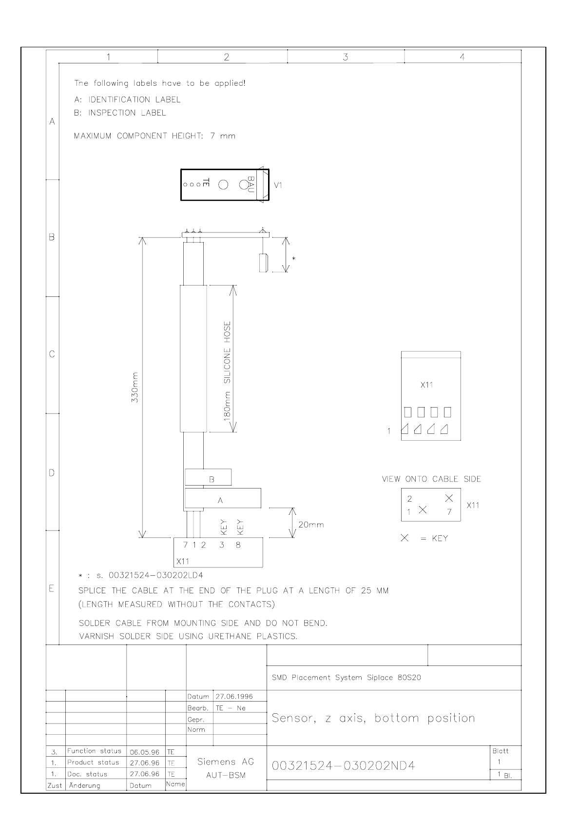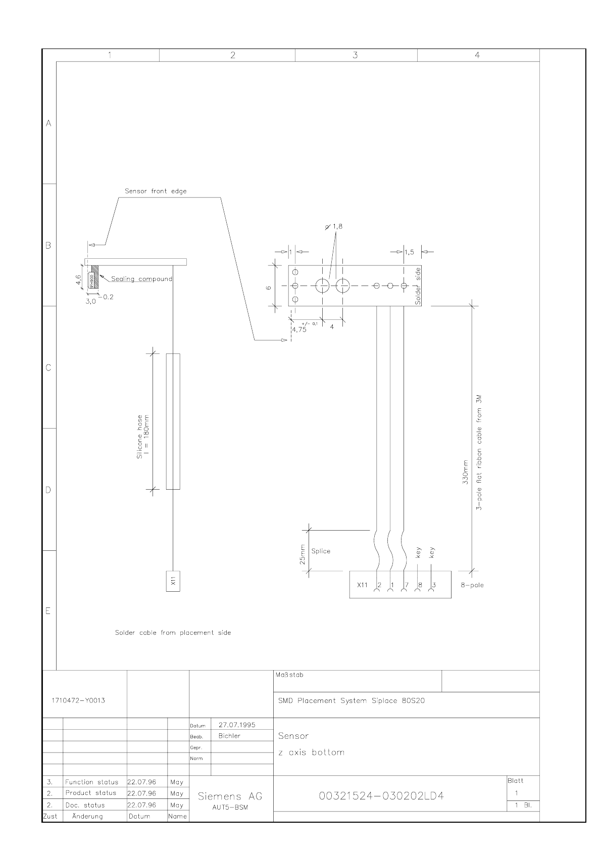 SIPLACE 80S-20 Sensor Z a xis, bott om 3.11 - 15 Sensor Z a xis, botto m Y0013L 32.dwg 00321524 -0302 02LD4 Sen sor Z axis, bott om