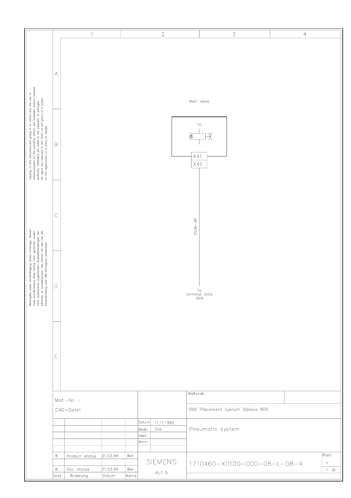 SIPLACE 80S-20 Pneumatic system 3.17 - 1 3.17 Pneumatic System SIPLACE 80 Pneumatic syst em X0100L 08.dwg 1710460- X0100- 000-08 -L-08-4 Pneum atic system