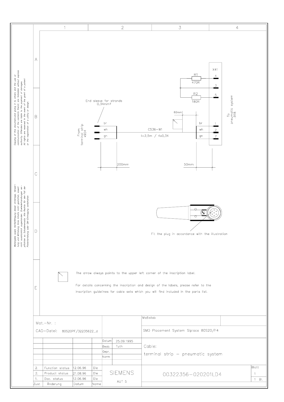 3.17 - 2 Cable Terminal strip - pneumatic system SIPLACE 80S-20