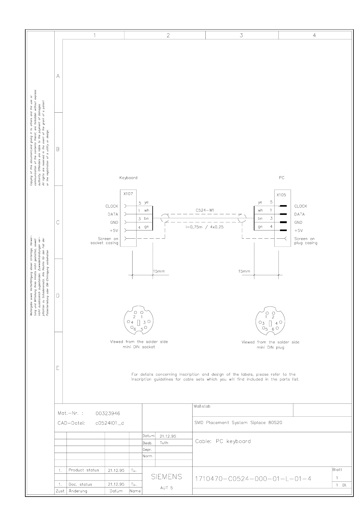 SIPLACE 80S-20 Cable PC k eyboard 3.5 - 65 Cable PC keyboard C0524L 01.dwg 1710470- C0524- 000-0 1-L-0 1-4 Cable PC keyboar d