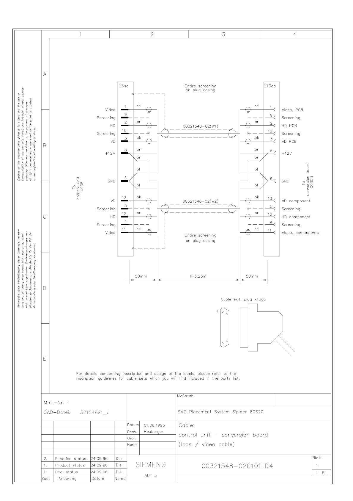3.5 - 66 Cable Control unit - conversion board (Icos/video cable) SIPLACE 80S-20