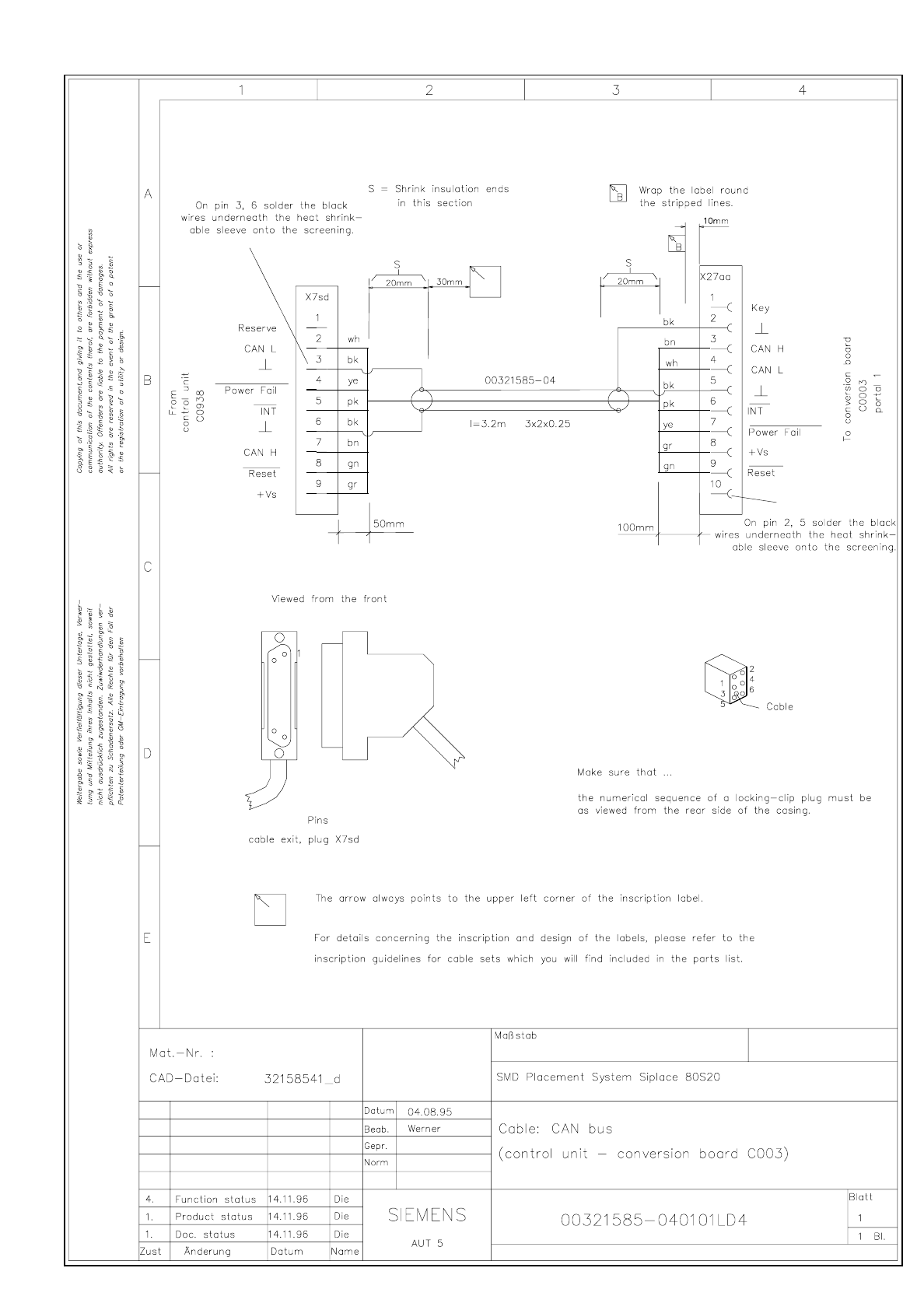 SIPLACE 80S-20 Cable CAN bus (control unit - conversion board C003) 3.5 - 73