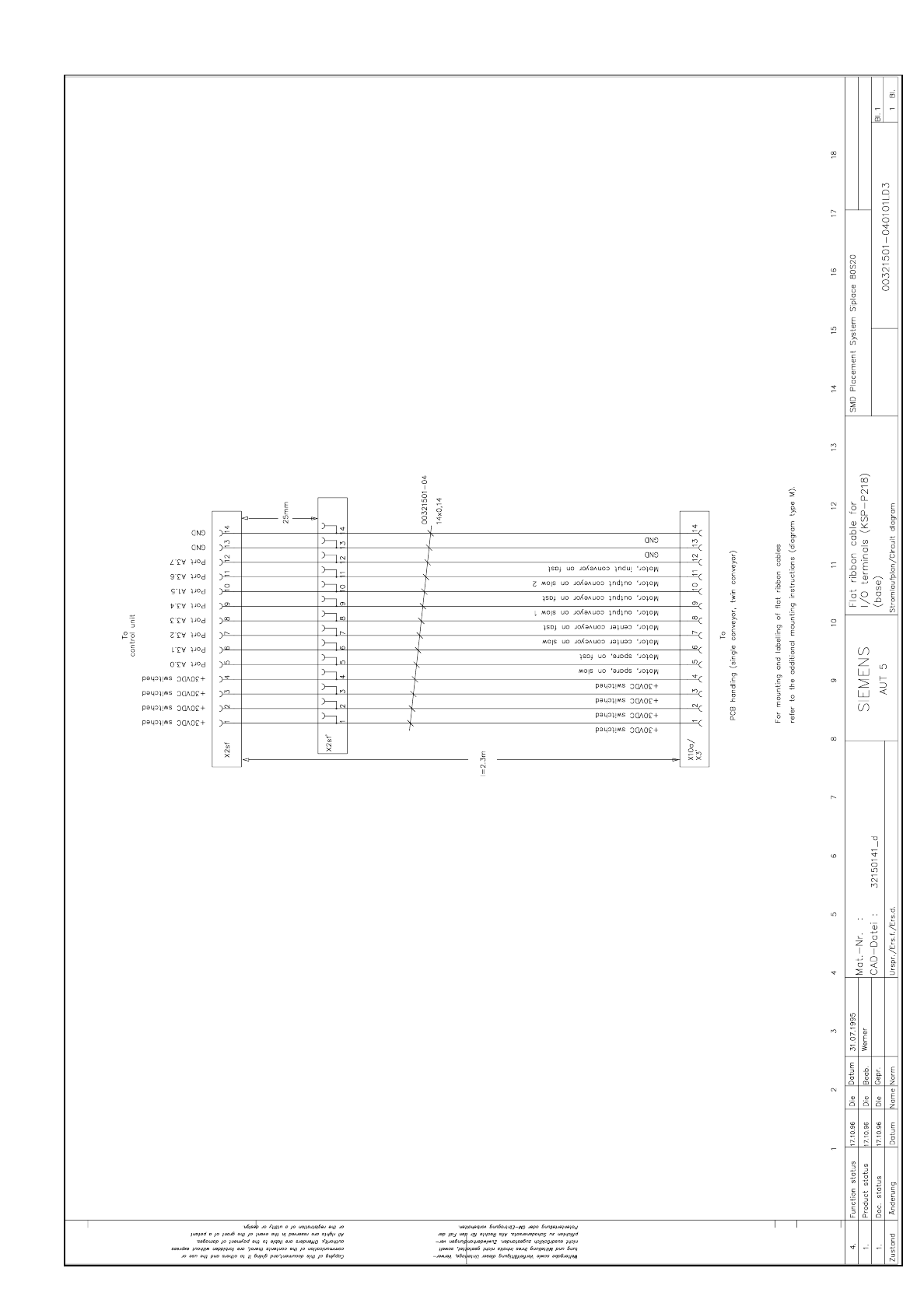 3.5 - 94 Flat ribbon cable for I/O terminals (KSP-P218) (base) (Sh. 1 of 2) SIPLACE 80S-20