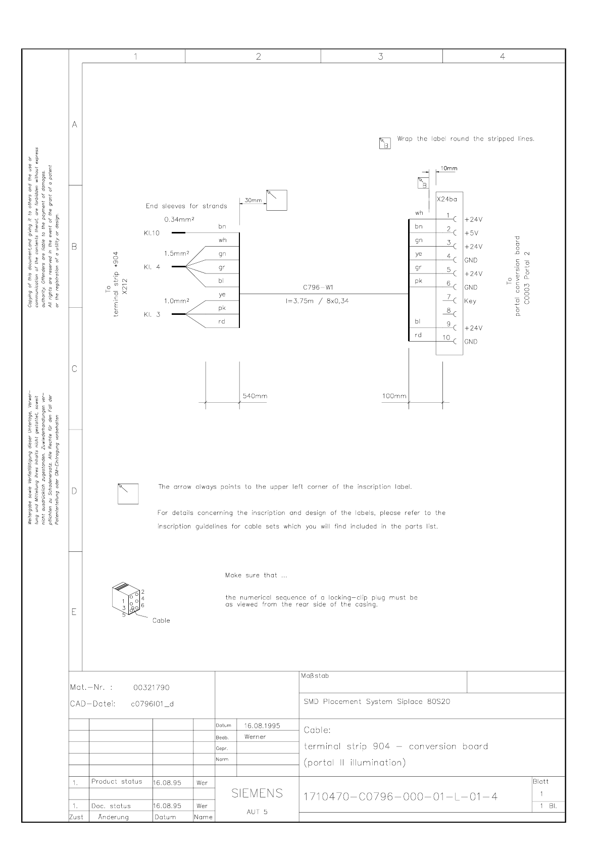 3.5 - 162 Cable Termi nal st rip 904 - convers ion board (illumin ation portal II) SIPLACE 80S -20 Cable Terminal st rip 904 - conve rsion board (illuminatio n portal II) C0796 L01.d wg 1710470-C079 6-000-01-L-01-4 Cable…