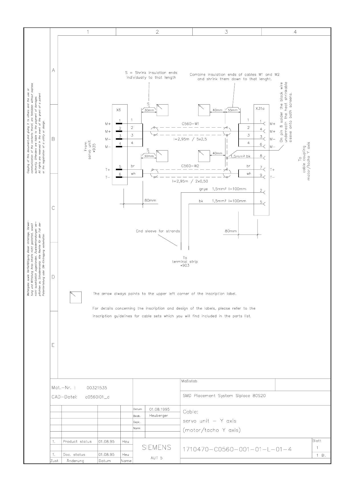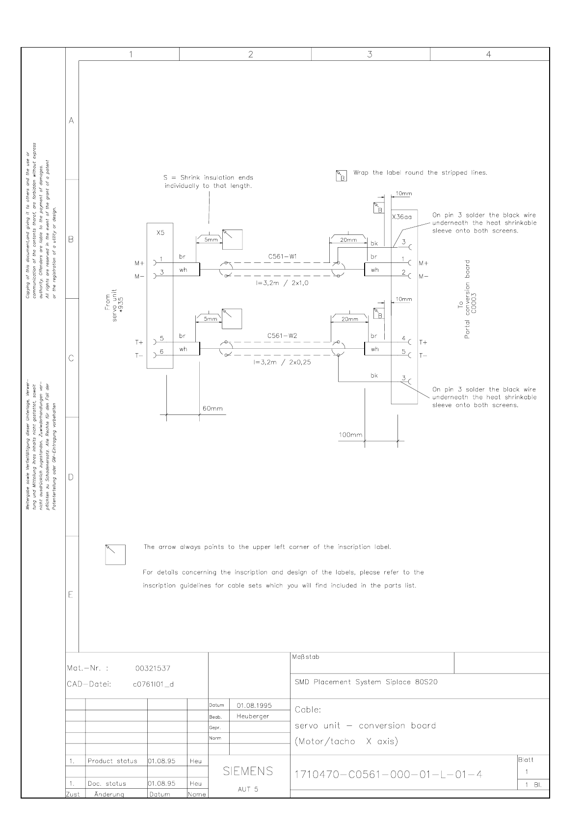 3.6 - 26 C able Serv o unit - convers ion boa rd (Motor/ta cho X a xis) SIPLACE 80S-20 Cable Servo un it - conv ersion b oard ( Motor/ta cho X axi s) C0561 L01.d wg 171047 0-C056 1-000- 01-L-01 -4 Cable Serv o unit - co …