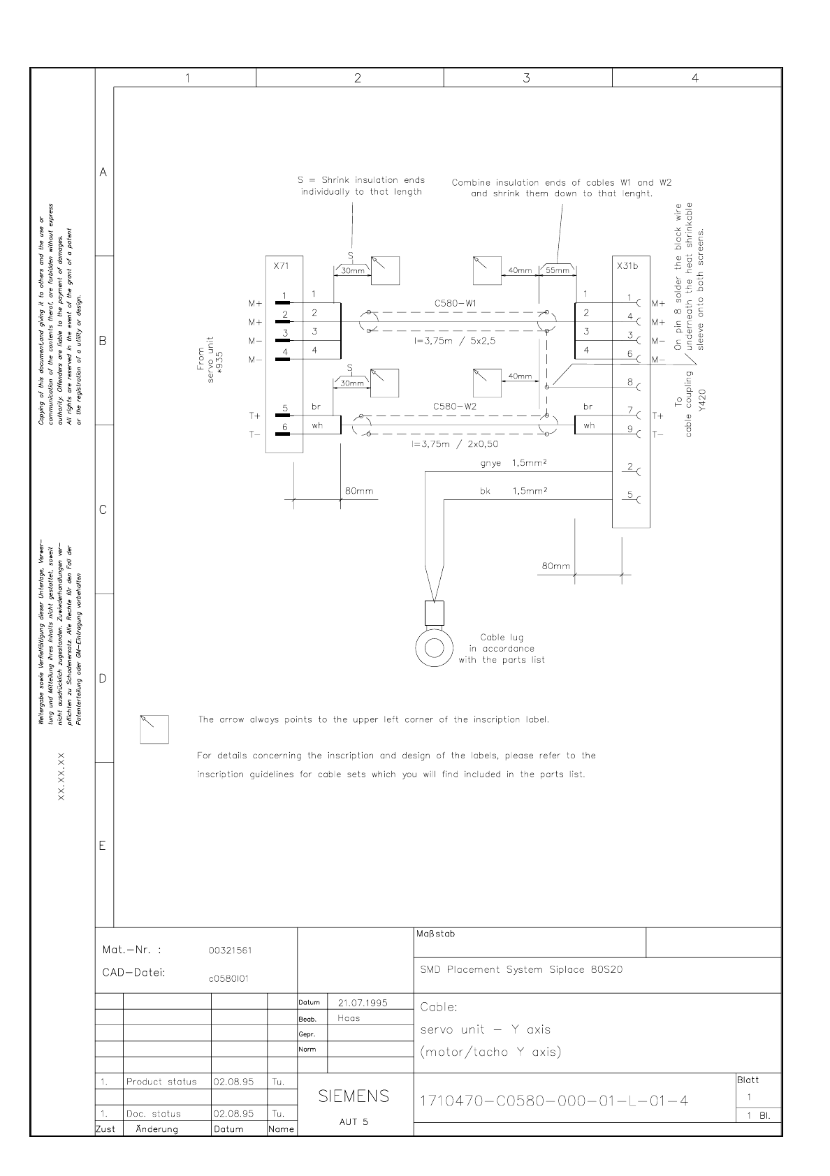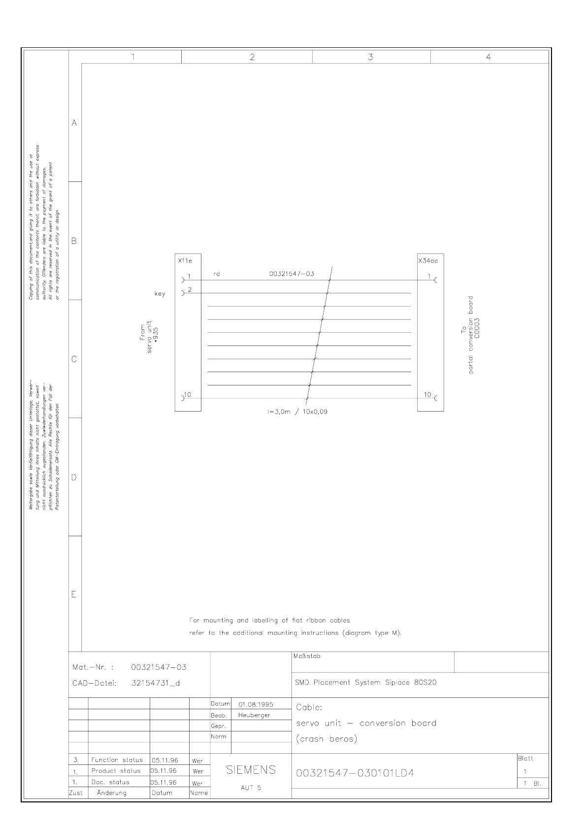 SIPLACE 80 S-20 Cab le Servo u nit - co nversion board (crash bero s) 3.6 - 31 Cable Ser vo unit - conver sion bo ard (cr ash beros) 3215473 m.dw g 00321547 -0301 01MD4 Cable S ervo uni t - c onversio n boar d (cra sh be…