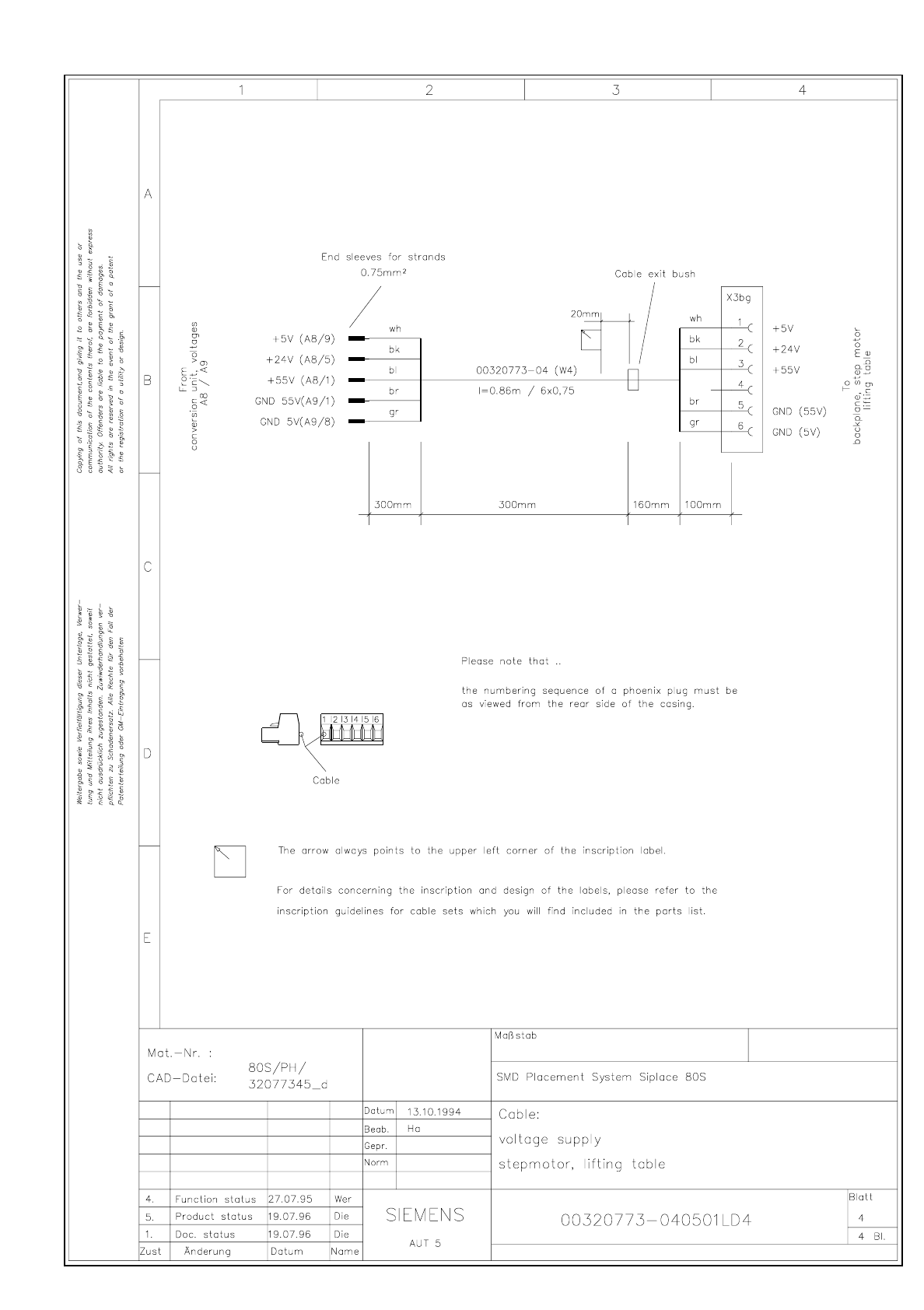 SIPLACE 80S-20 Cable Power supply lifting table step motor (Sh. 4 of 4) 3.12 - 27
