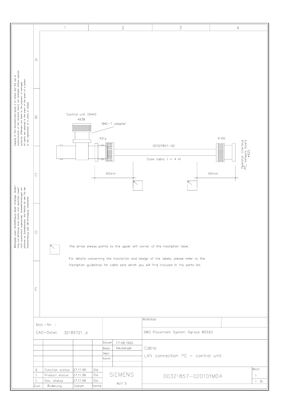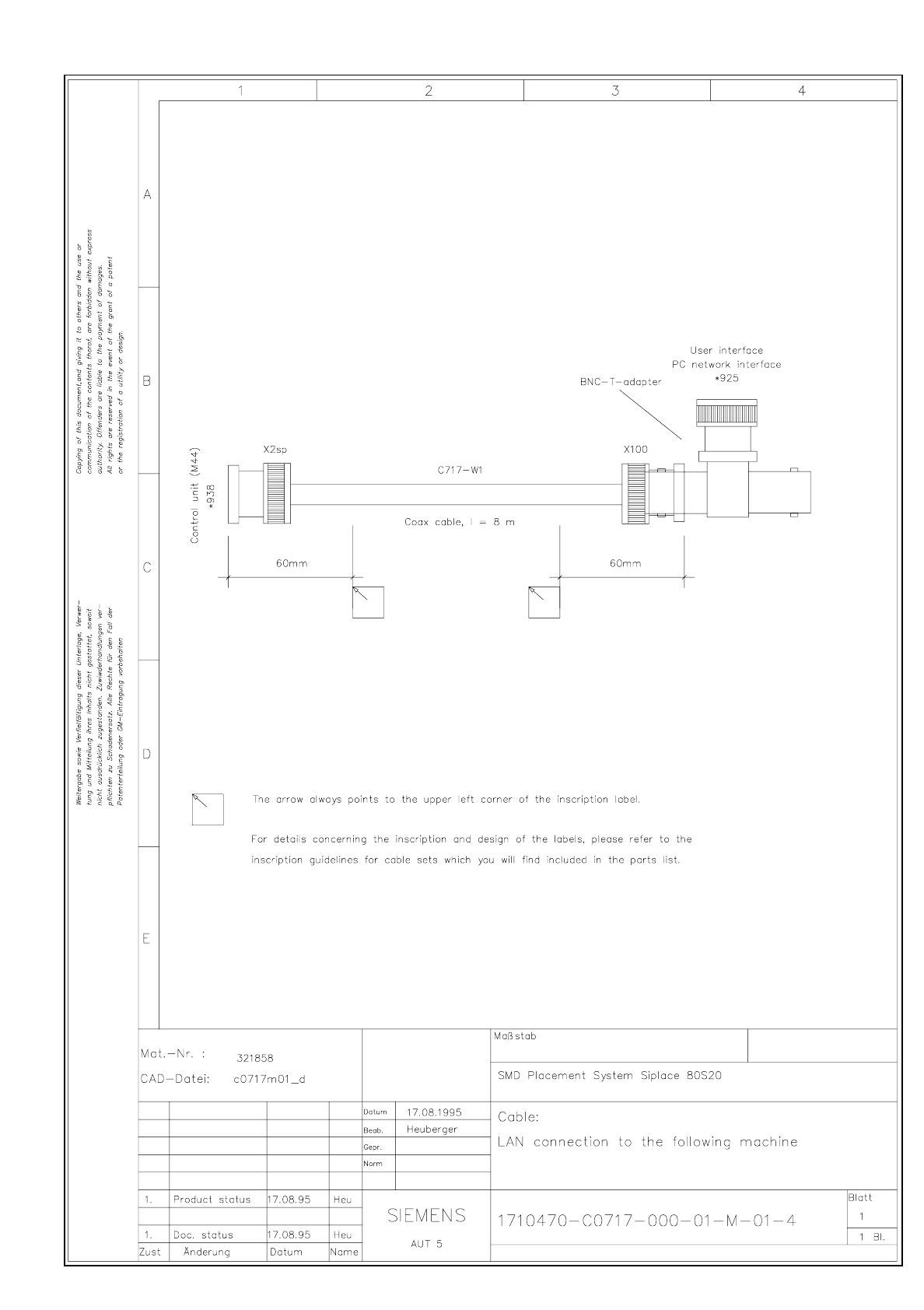 SIPLACE 80 S-20 Ca ble LAN conne ction to th e foll owing mac hine 3.23 - 9 Cable LAN conn ection to th e foll owing ma chine C0717M 01.dwg 1710470- C0717- 000-0 1-M-0 1-4 Cable LA N conne ction to t he foll owing m achi…