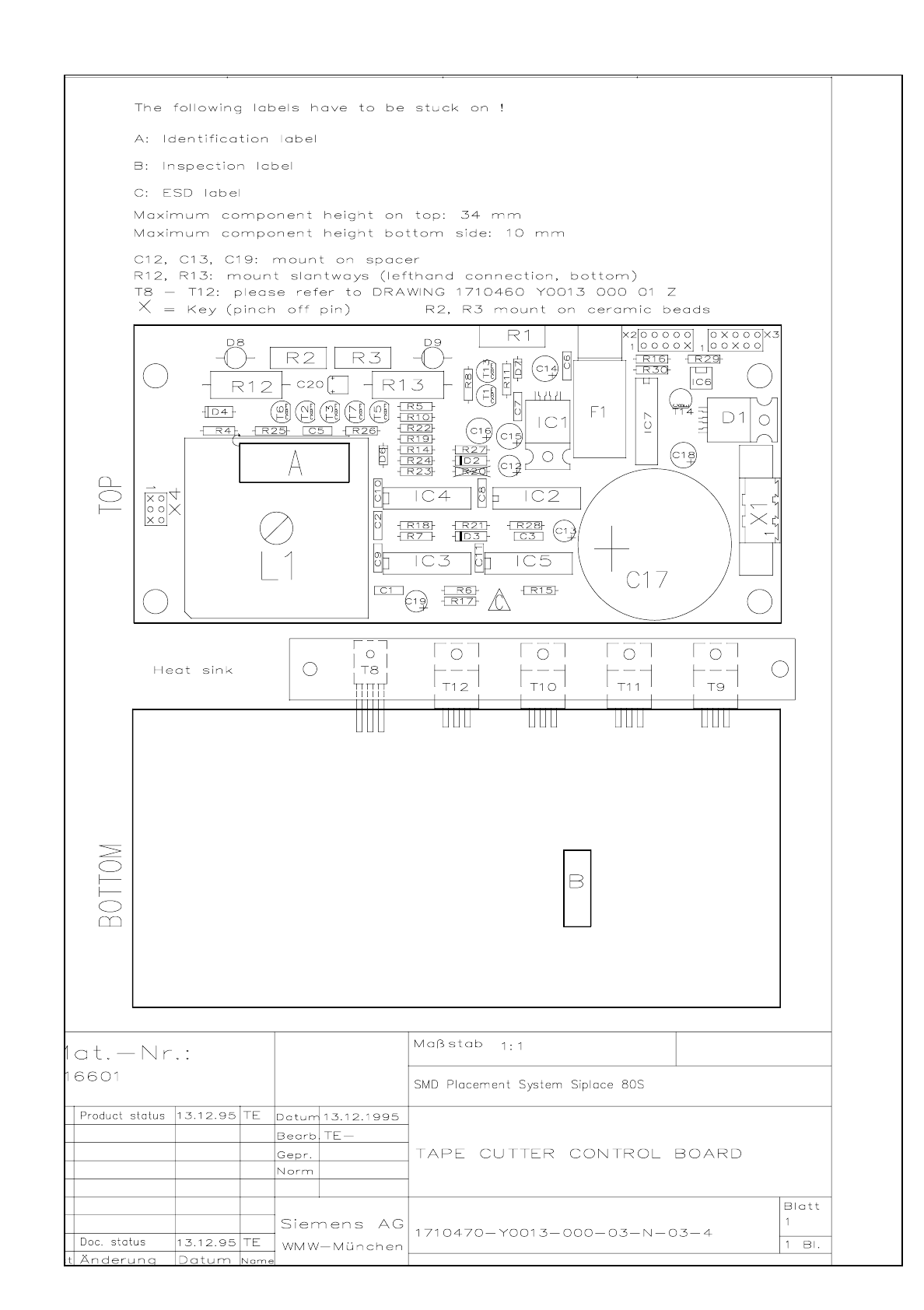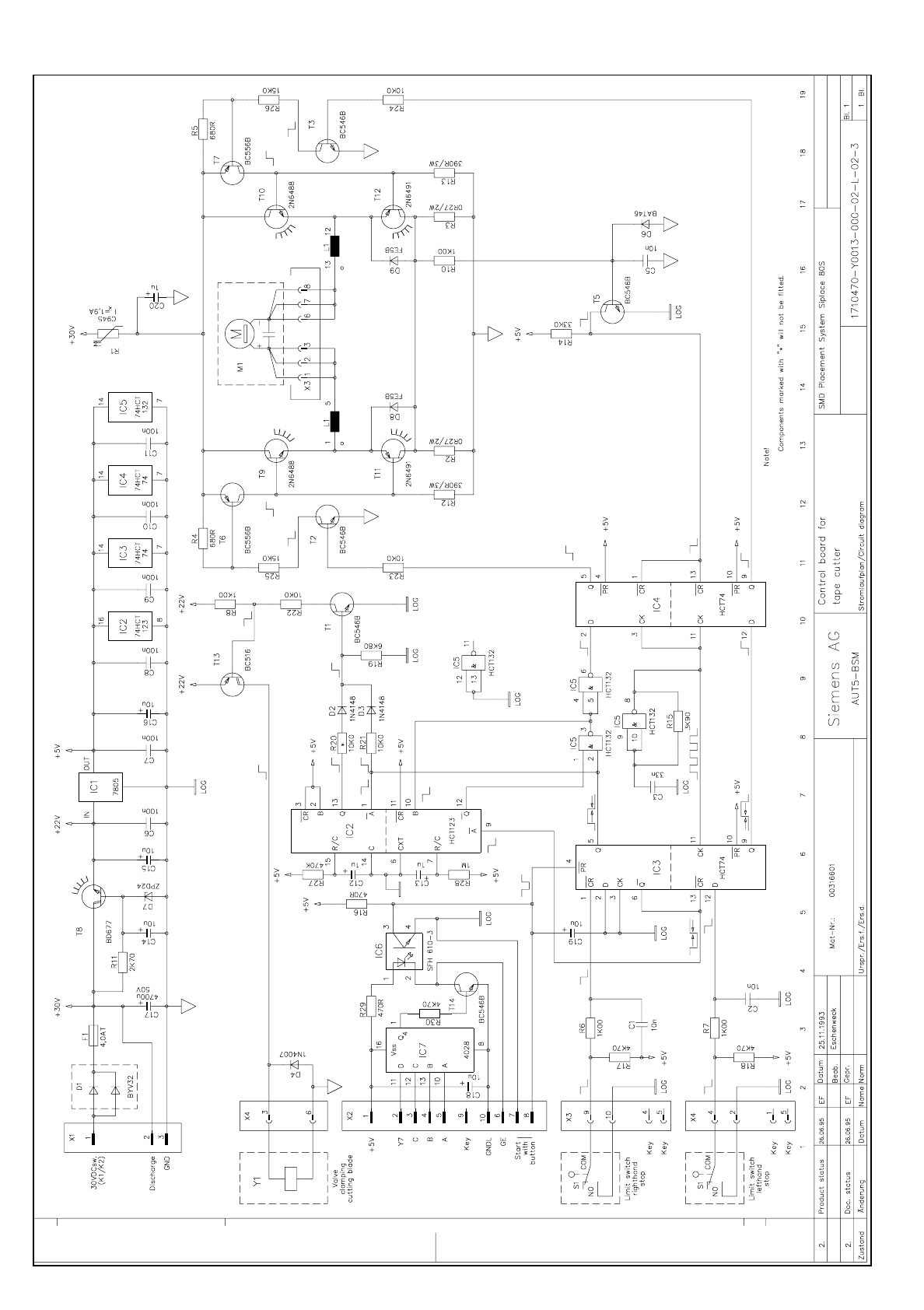 SIPLACE 80S-20 Tape cu tter control bo ard 3.24 - 3 Tape cutte r cont rol b oard Y0013 N03.dw g 1710470- Y001 3-000-03 -N-03- 4 Tape cutter contro l board