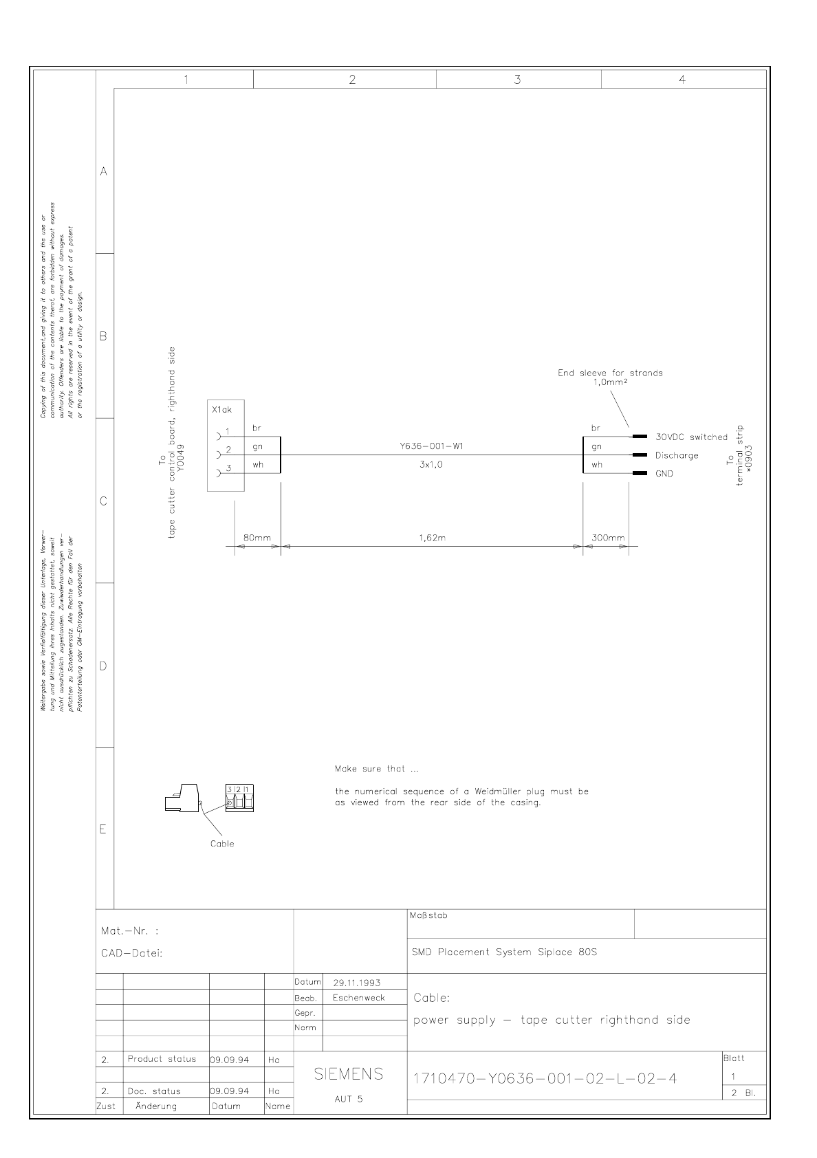 1710470-Y0636-001-02-L-02-4 Cable Power supply - tape cutter righthand side (Sh. 1 of 2)
