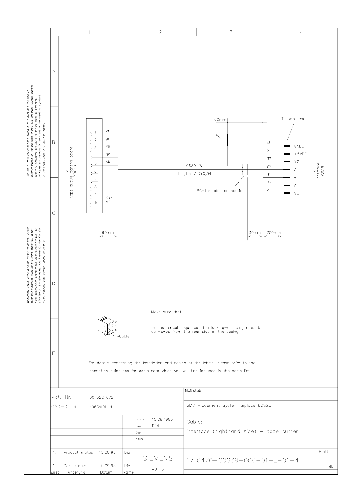 SIPLACE 80S-20 Cable Interfa ce (righthand side) - tape cutter 3.24 - 1 1 Cable In terface (righthan d side) - tape cutter C0639L 01.dwg 1710470- C0639- 000-0 1-L-0 1-4 Ca ble Inte rface ( rightha nd side) - tap e cutter