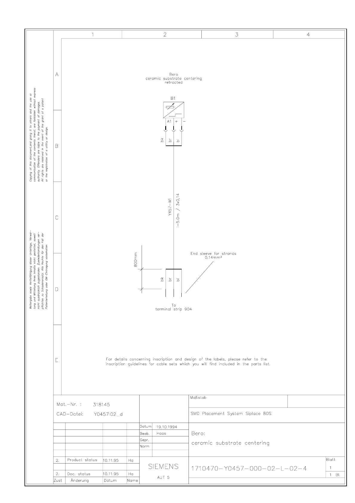 1710460-Y0591-000-01-L-01-4 Connection cable Siplace --> Siplace