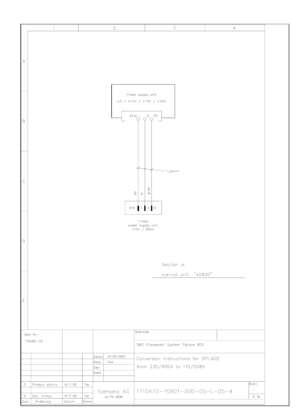 1710470-Y0921-000-05-L-05-4 Conversion instructions for Siplace from 230/400V to 110/208V (Sh. 1 of 6)