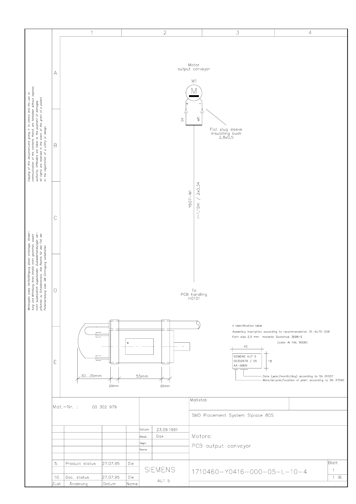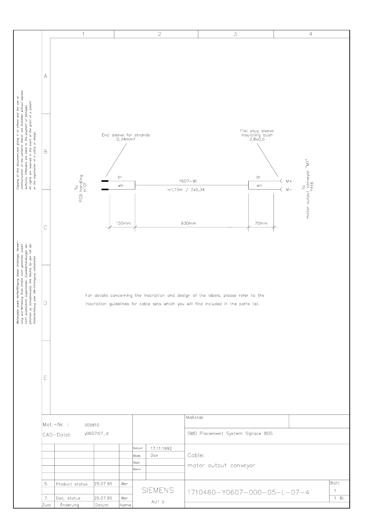 1710460-Y0607-000-05-L-07-4 Cable Motor output conveyor