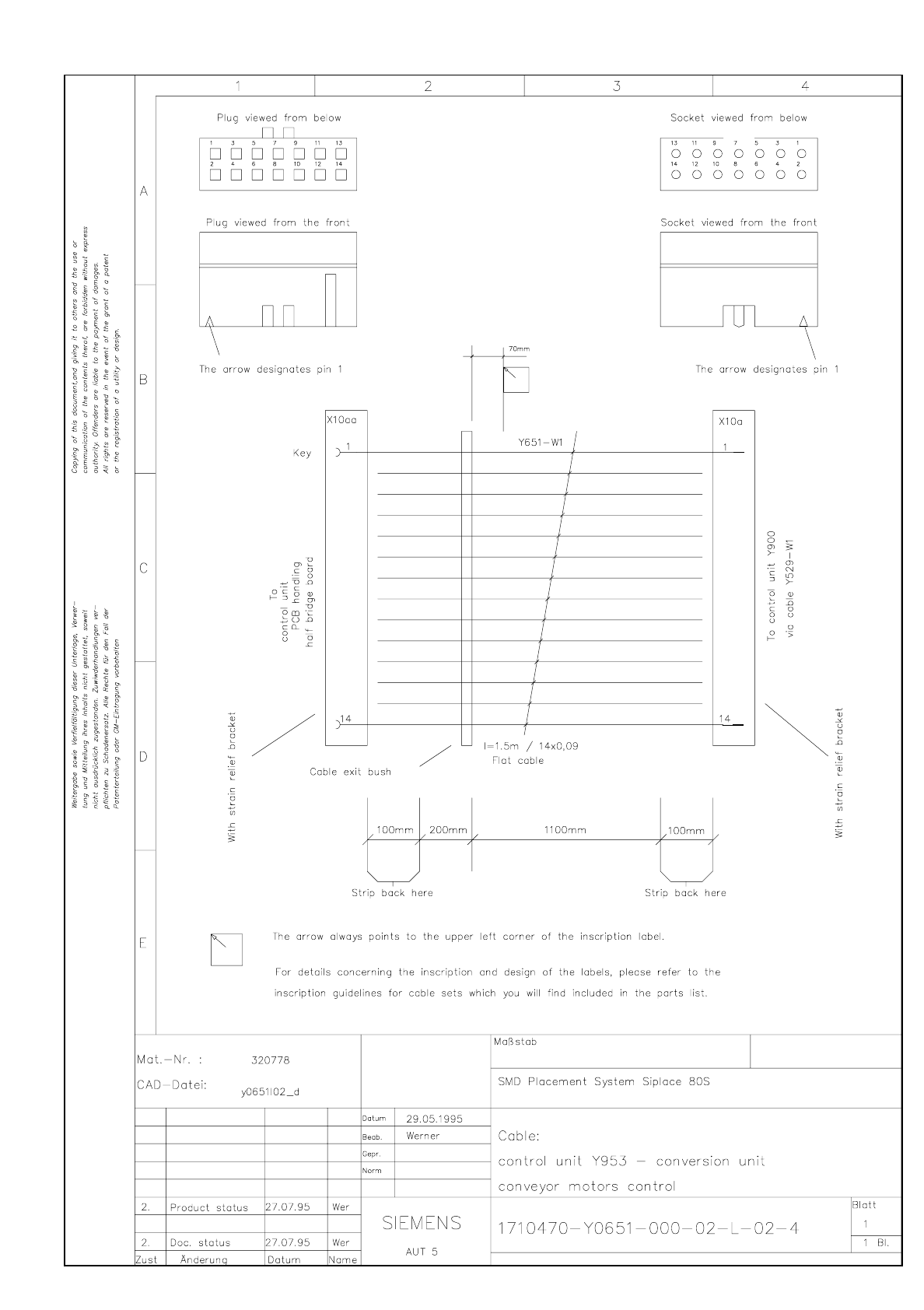 1710470-Y0651-000-02-L-02-4 Cable Control unit Y953 - conversion unit, conveyor motors control