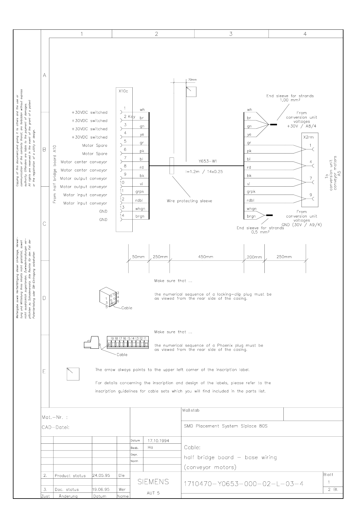 1710470-Y0653-000-02-L-03-4 Cable Half bridge board - base wiring (conveyor motors) (Sh. 1 of 2)