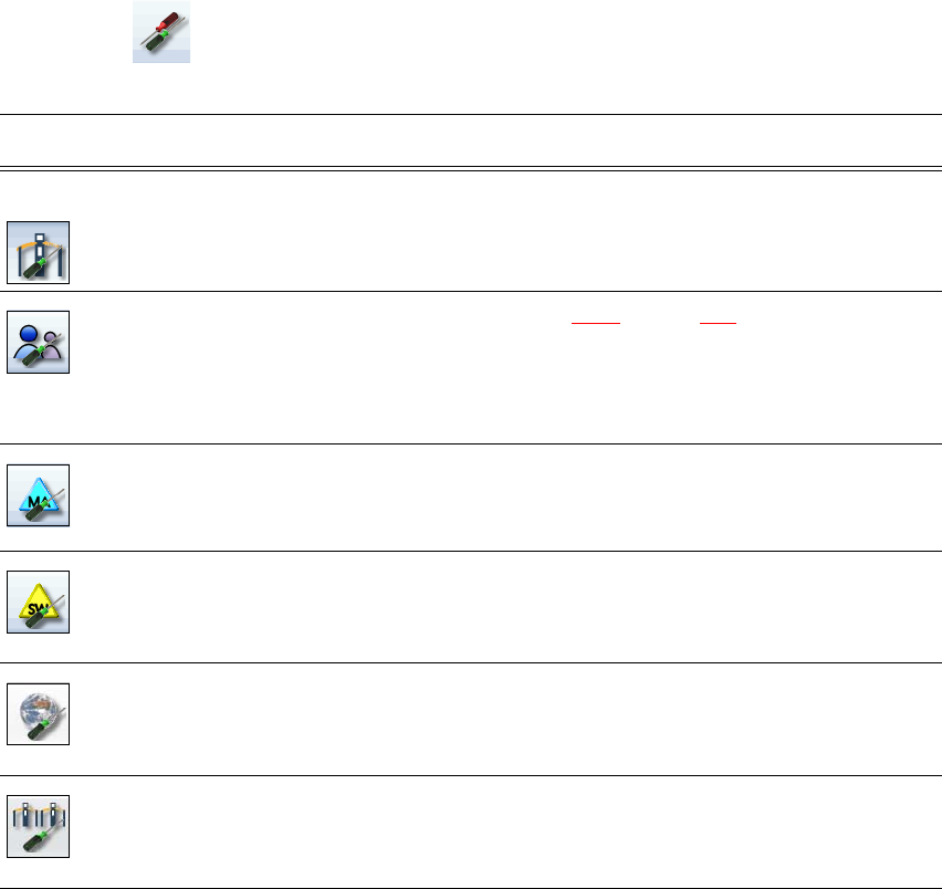 5 贴片机处的工作 使用手册 SIPLACE SX1/SX2 V2 和 V3 版 5.5 用户界面 使用软件版本 SC.713.1 或更 新 版本 12/2020 238 5.5.5 设置 在 “ 设置 ” 视图中,您可以更改各种用户设置、软 件选项和贴片机选项。 在工具栏 中,点击 “ 设置 ”。 右侧会显示一个附加工具栏。下面的 表格简要介绍了这些图标和设置。 图标 设置 说明 贴片机设置 仅适用于 “ 高级生产 ”、 “ 维修…