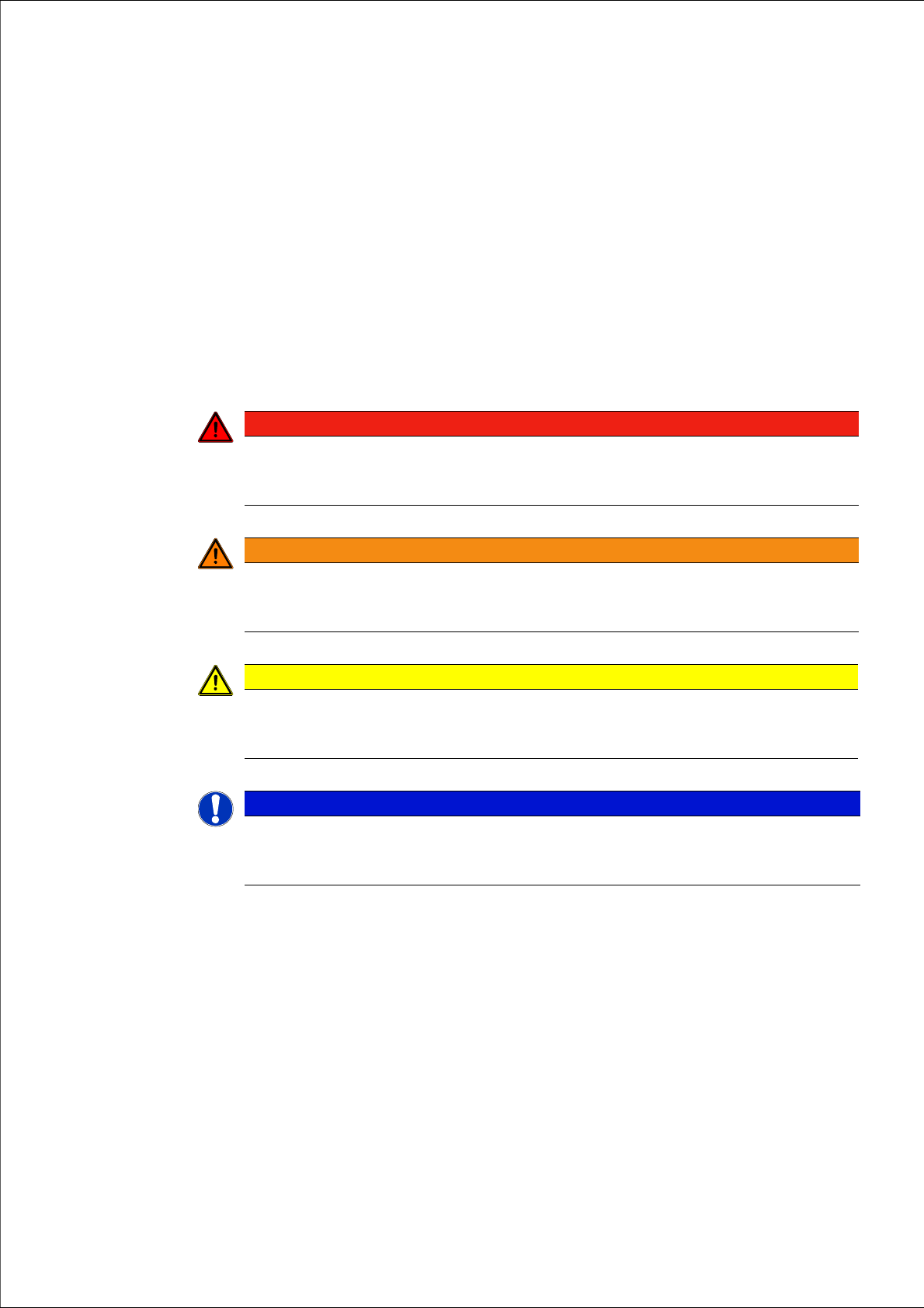 注意事项已经使用了警示用的三角形做了突出显示,根据不同的危险程度显示如下: