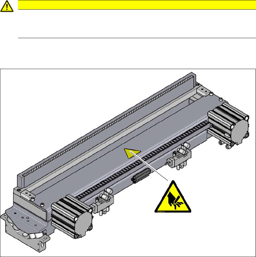 图 2.2 - 6 料带切割器顶部的警告标签 W 205