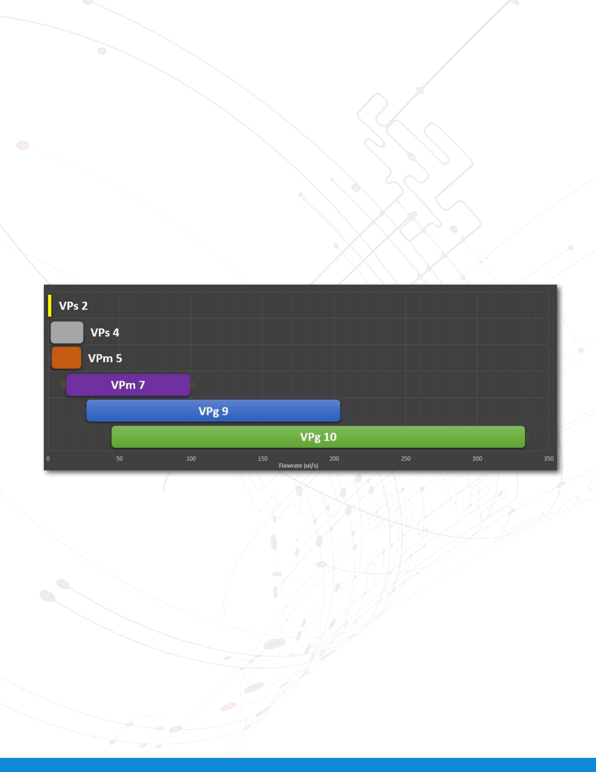 The following table shows each of the one-component VPs, VPm and VPg sizes with corresponding ow rates in