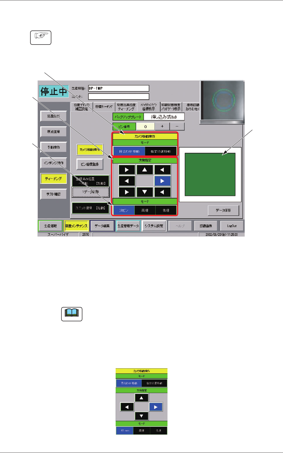 (1) “バックアップピン座標教示”タブシートの [ カメラ移動