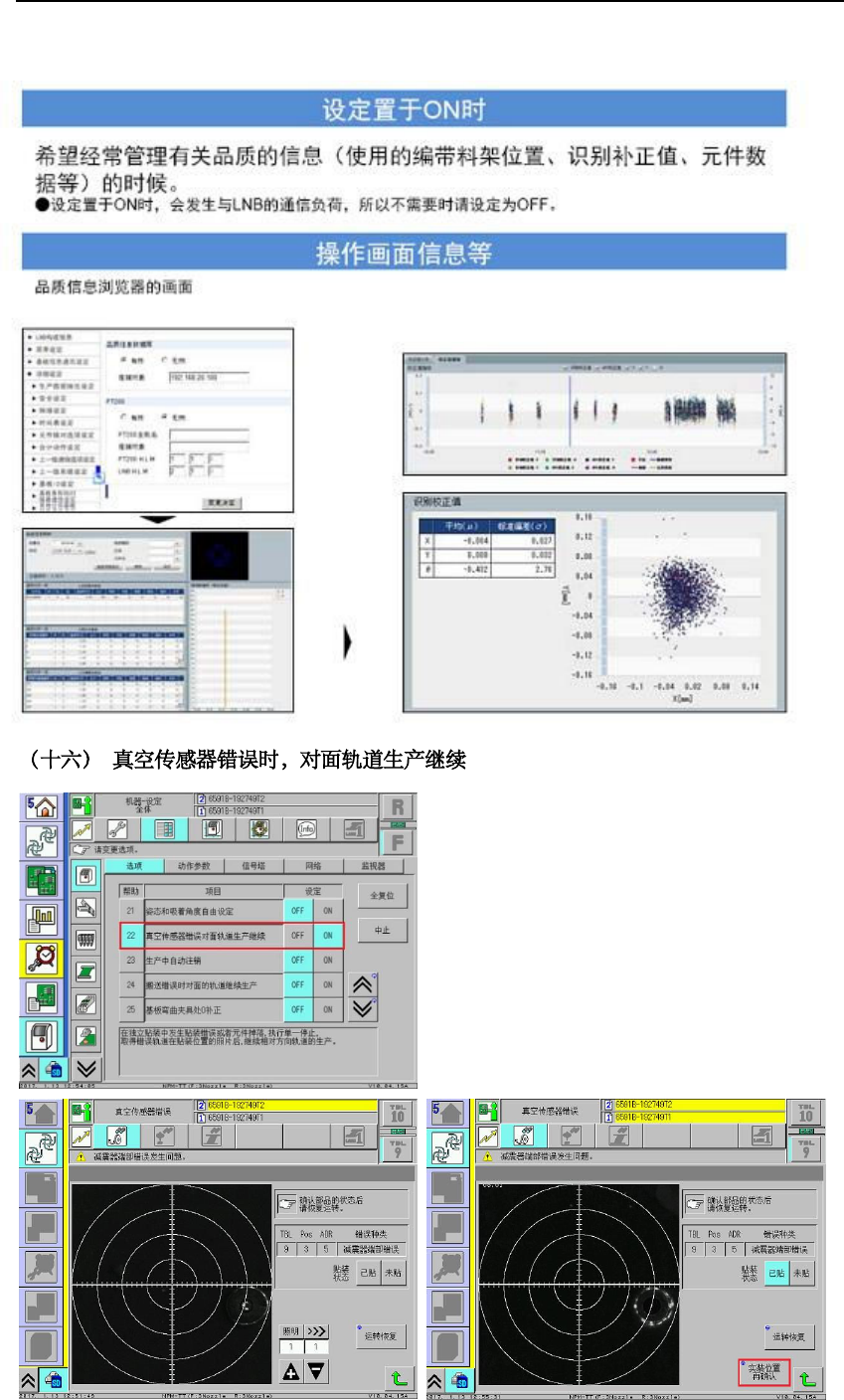 OFF ON 为 OFF 时,报 警实装错 误,贴装 头相机会 在物料的上方, 为 ON 时,报 警实装错 误,贴装 头相机不 在物料的上方会 退回到轨 道旁。