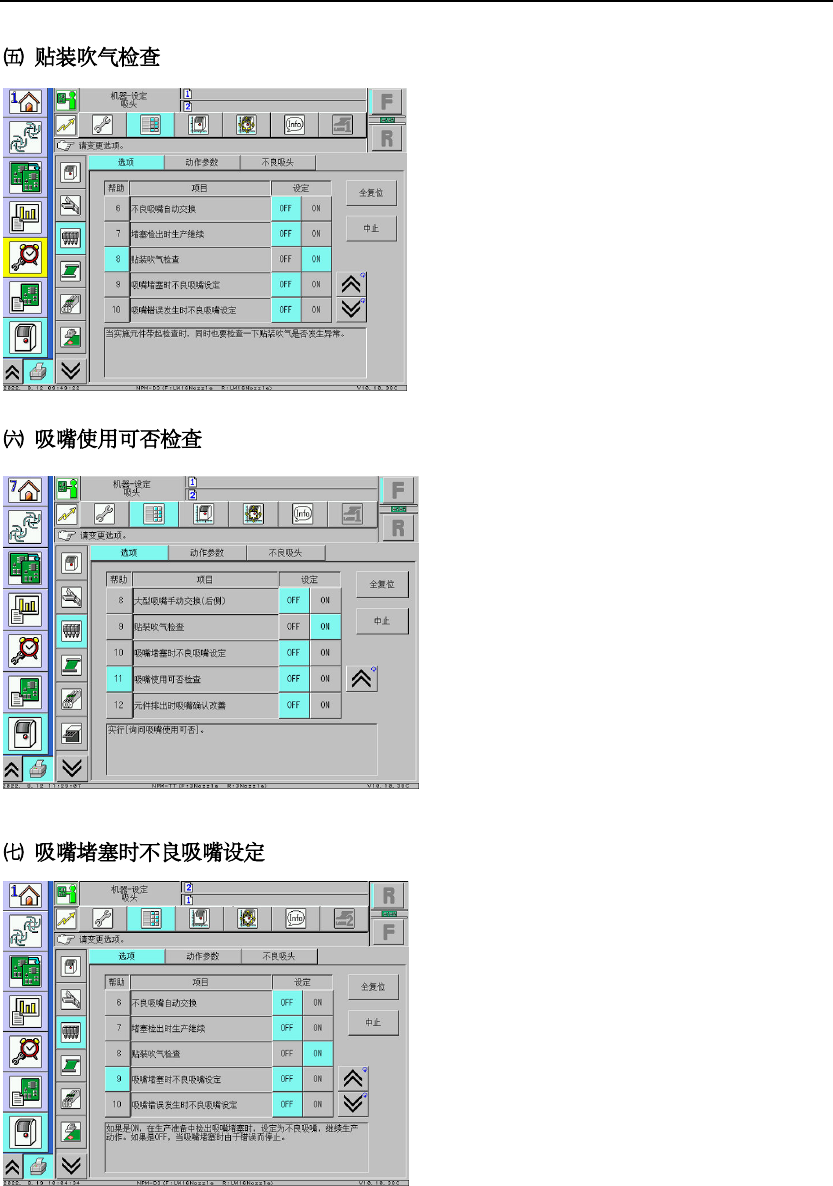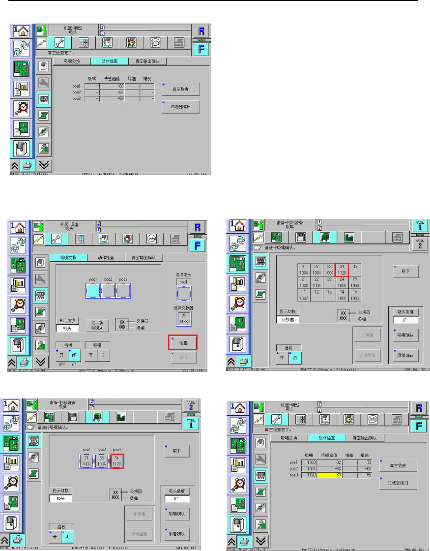 吸头未安装吸嘴 时,真 空值无异 常 设置安装完吸 嘴后,报 警信息中的 ST K 134 -3 号 头 1128 的吸嘴脏污 ,真 空达不到