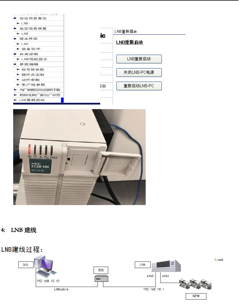 LNB 是连接 NPM 设 备与线外编程 电脑 ( DGS ) 的纽带, L NB 相当于 C M602 设备的 PT 电脑,保持与 NPM 设备时时通信功能, LNB 可以更好的防止 U 盘病毒 入侵 将 LNB 主开关在 ON 状 态,等待 5 分钟左 右后 LNB 与 NPM 设备自动连接 LNB DGS 先开!再 开机 进去 LNB 网站 , 最下面有个 LNB 重新 启动, 点进去然后点 击 LNB- PC 电源关闭, 等过 …