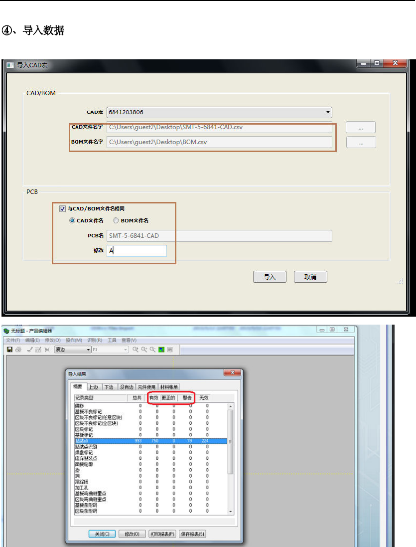 贴装点中的有效、更正的、警告合计为此程序 BOM 的贴装点。