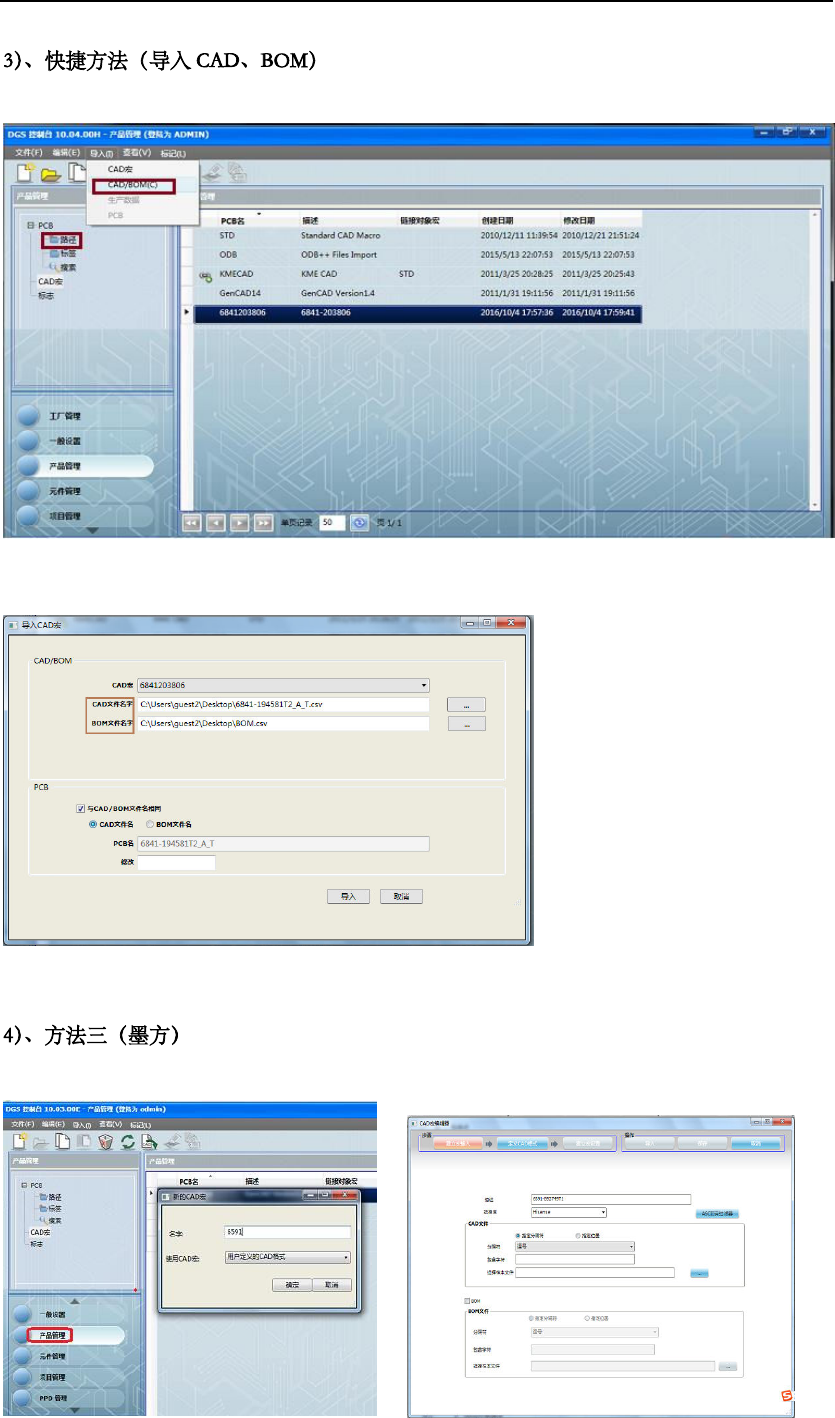 若首程序使用 CAD 宏已经 导入一 遍了,后期的 产品数据导 入,无需再使 用 CA D 宏, 可直接点击“路 径 - 导 入 - CAD /BOM”