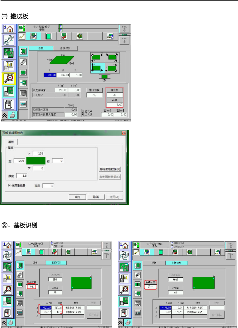 Mark 点识别,若基板尺寸超过 348MM,则需打开分割贴装功能,分割功能打开后,基板的识别