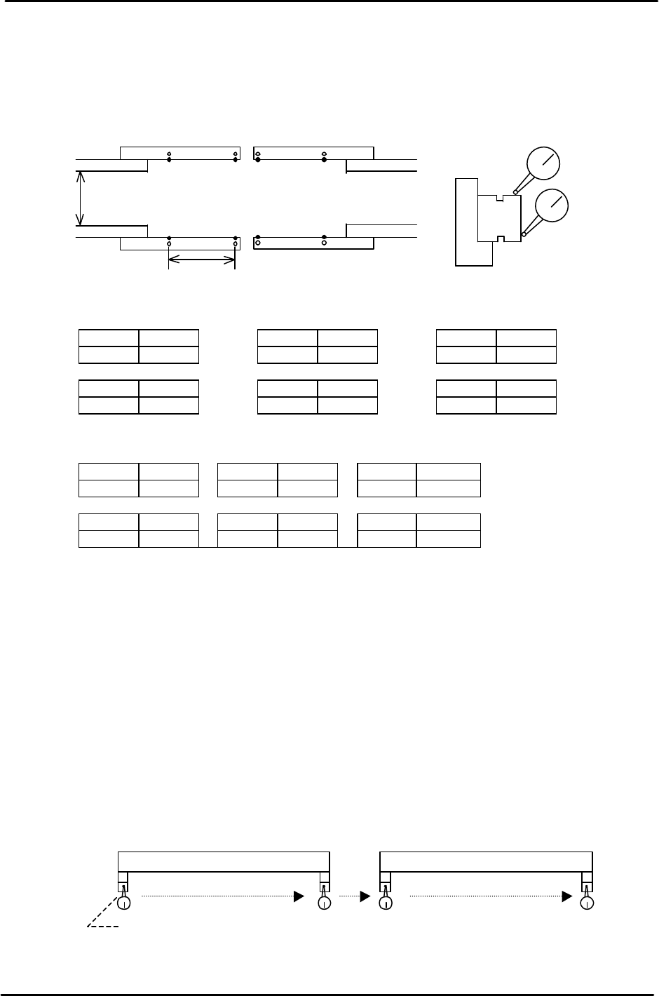 4. For the secondary rail carrier claw adjustment: Set a dial gauge on the joint plate. Write down the