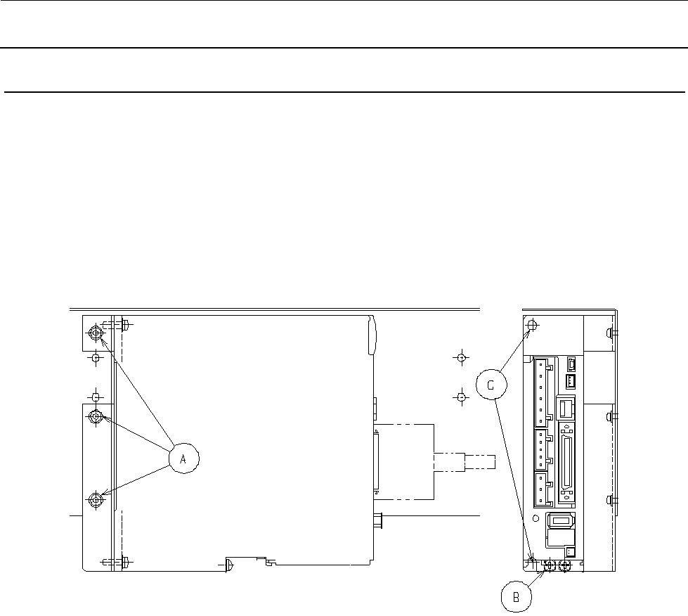 维修调整要领书 3-5 3- 4. AC 伺服驱动器的更换 请拆下驱动器的连接器。 拆下 A 部的螺丝,将驱动器连同托架拉出。(此时 B 部还连着 FG 线,故请注意) 拉出到能够取下 B 部 C 部螺丝的位置后,请拆下 B 部 C 部的螺丝并更换驱动器。 ※输入参数需要专用软件。 驱动器单体出厂时,是发货已输入好参数的驱动器,请准备下述货号的驱动器。 备用驱动器货号: 40040687 ⑤伺服驱动器(货号: 40040687 )(据图…