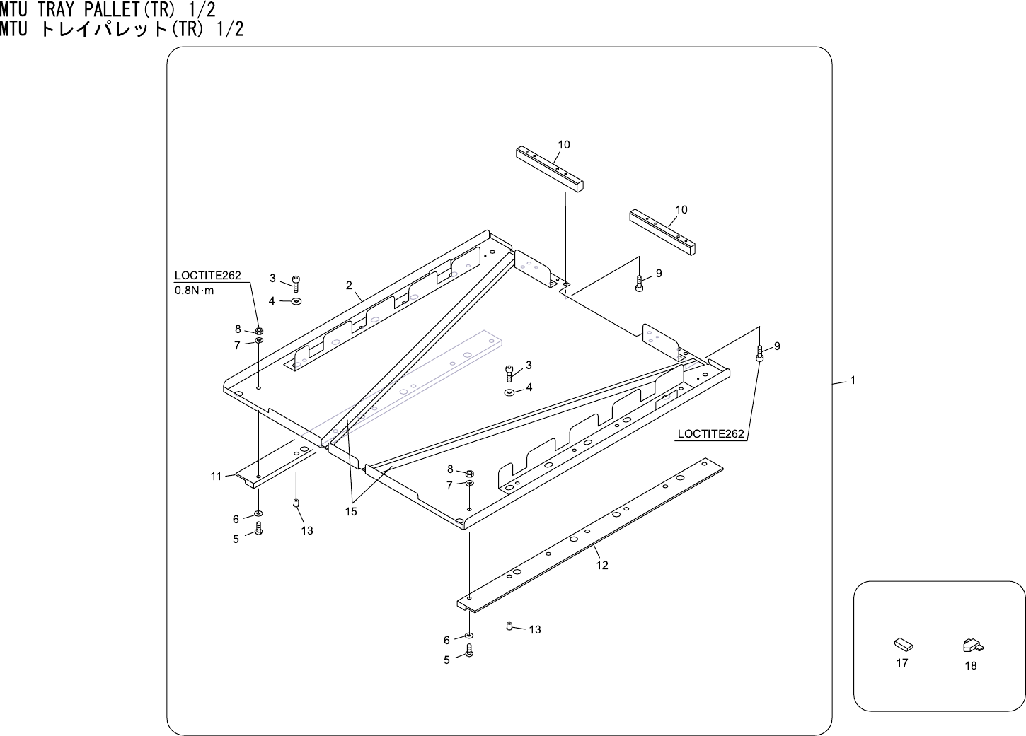 MTU TRAY PALLET(TR) 1/2 MTU トレイパレット(TR) 1/2 No. Drg.No. & Code No. QTY Description Rating Materials Remarks 番号 図番 & コード番号 個数 品名 規格 材質 備考 1 ADETR8066 10 TRAY トレイ OT 2 DETR6914 10 TRAY トレイ FE 3 H5510A 120 BOLT ボルト…