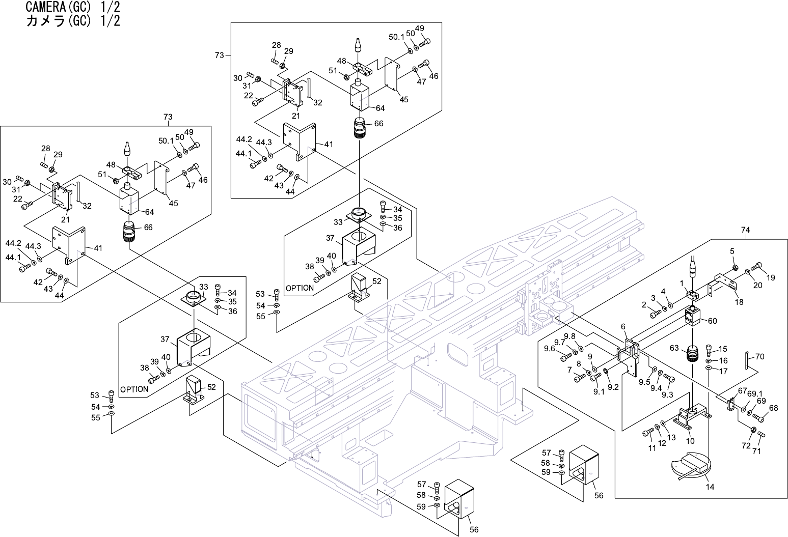 CAMERA(GC) 1/2 カメラ(GC) 1/2 No. Drg.No. & Code No. QTY Description Rating Materials Remarks 番号 図番 & コード番号 個数 品名 規格 材質 備考 1 DNGC1760 1 CLAMPER クランパ PL 2 H5281A 2 BOLT, HEX SOCKET ボルト 六角穴 M03X025 FE 3 W1021A 2 WASH…
