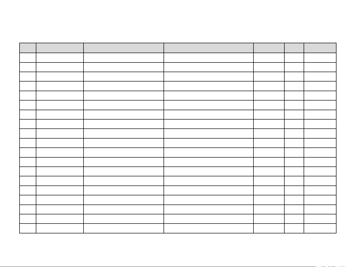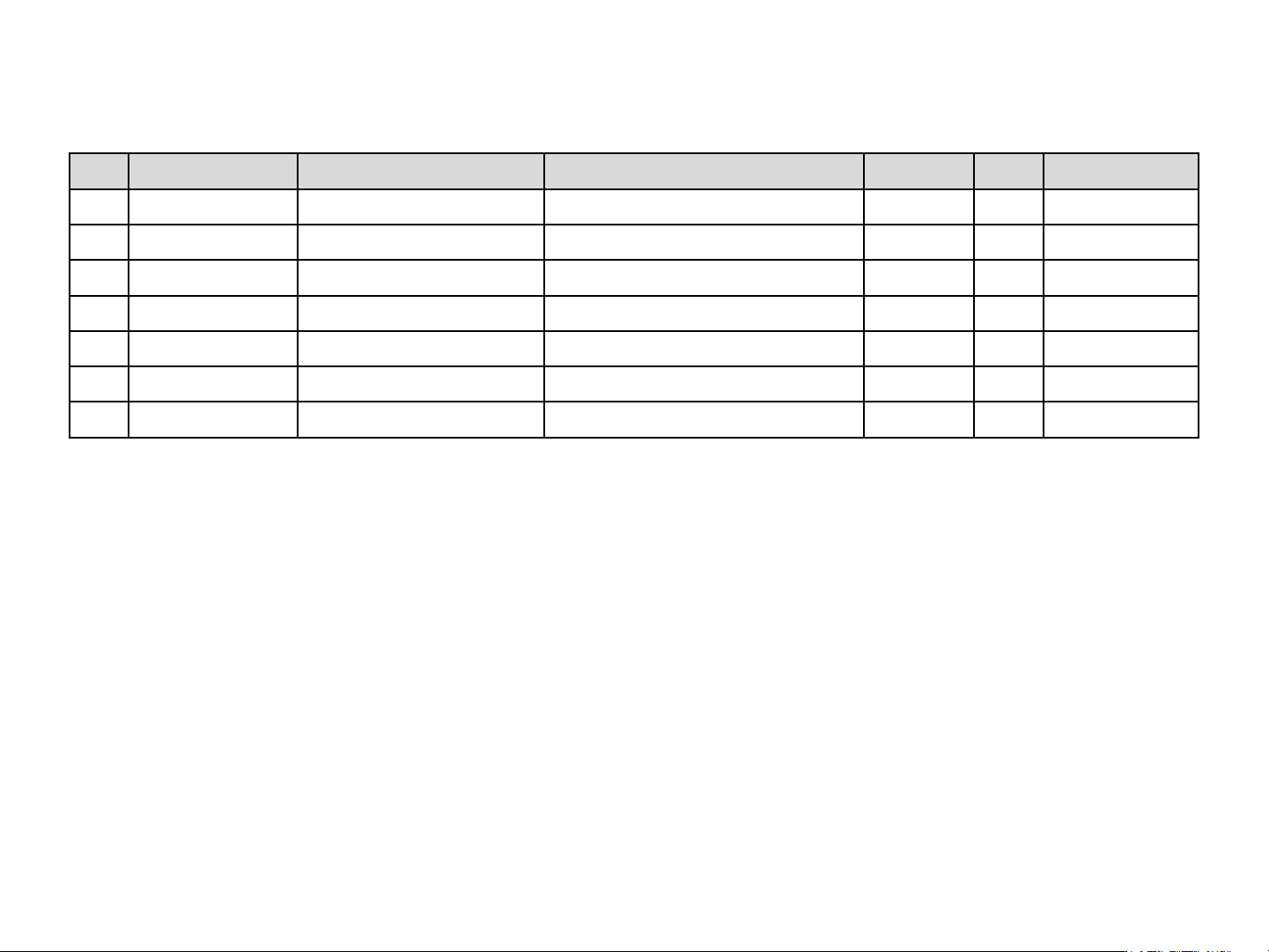 No. Item Code No. Specification Description Type Q’TY Remark
