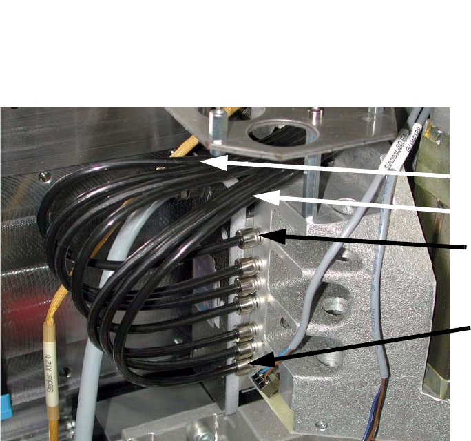 : Attach the compressed air hoses to the Y-axis gantry as shown and press them on firmly.