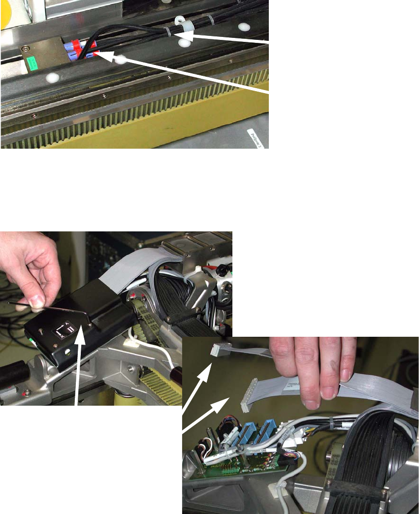 : Remove the 3 cable clamp on the gantry arm.