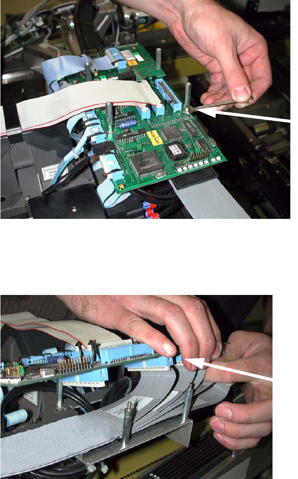 Replacement instructions - Gantry c able and hose carrier SIPLACE HS / S / F 01/2007 Edition 168 : Remove the three pins of the strain relief us ing a suit able tool (e.g. grooved hammer head ). 2 Do not use pliers to do…