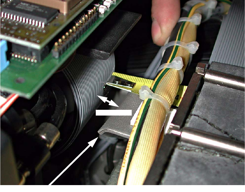 : Push the two gantries together as far as possible. The outermost ribbon cable should be ap-