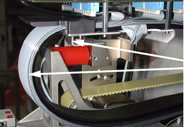 : Now fix the cable and hose carrier to the gantry arm using the clamps and check that the ribbon