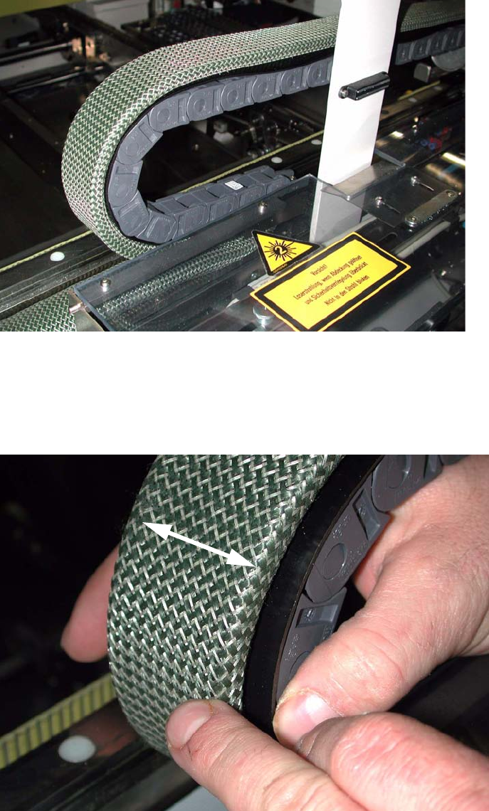 Replacement instructions - Gantry c able and hose carrier SIPLACE HS / S / F 01/2007 Edition 188 : Cut off the fabric hose at the fo ld that result s (see photograph ). : Cut off the two protective tapes so that they are…