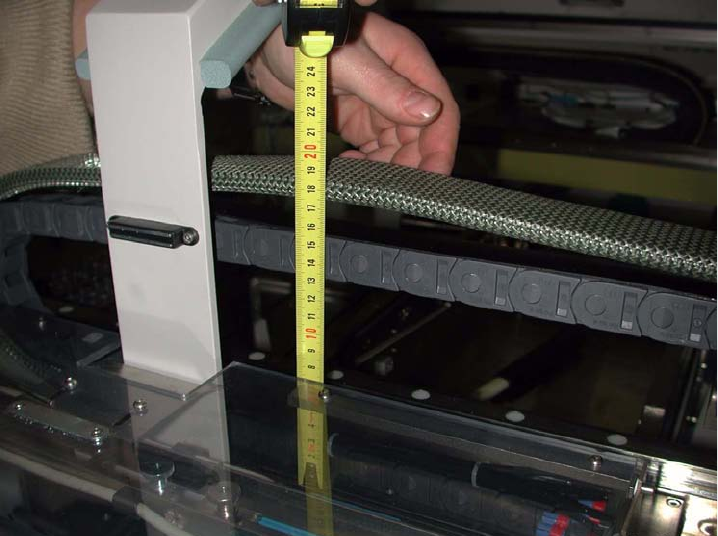 : Check the position of the cable and hose carrier once more. With the screws tightened, it must