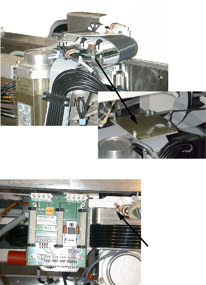 Austauschanleitung Portalkabelsc hlepp SIPLACE HS / S / F Ausgabe 01/2007 43 : Nehmen Sie den Schutzbügel über de m X-/Y -V erteiler ab (siehe Foto). : S tecken Sie alle S tecker vom X-/Y -V erteiler ab. : Schrauben Sie …
