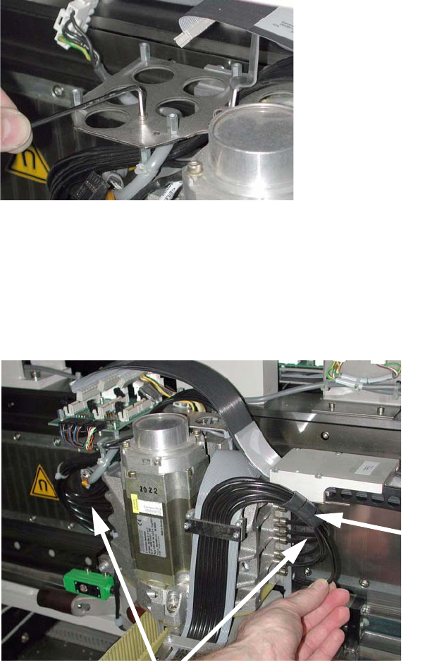 Austauschanleitung Portalkabelschlepp SI PLACE HS / S / F Ausgabe 01/2007 46 : S tecken Sie sämtliche Kabel an der Obe rseite der Kopf platine ab. 1 1 : Lösen Sie sämtliche Befestigungsschrau ben der Kopfp latine. Eventu…