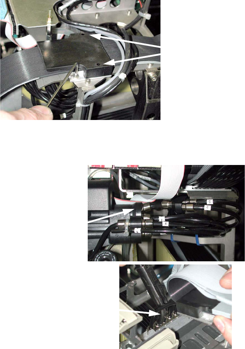 : Lösen Sie die zwei Schrauben, mit denen das Blech mit Schläuchen/Kabeln auf dem Por-